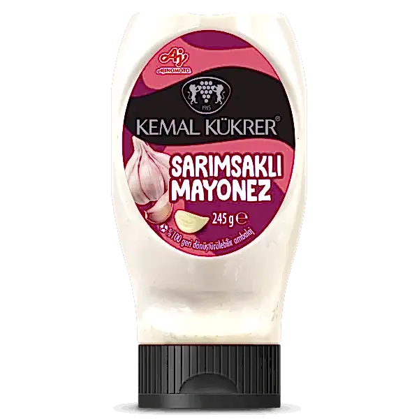 Kemal Kükrer Sarımsaklı Mayonez, patates kızartması, wrap veya döner gibi lezzetlerle birleştiğinde yemeğe dengeli bir yumuşaklık kazandırır. Sarımsağın belirgin tadı, mayonezin kıvamıyla uyum içinde birleşir.